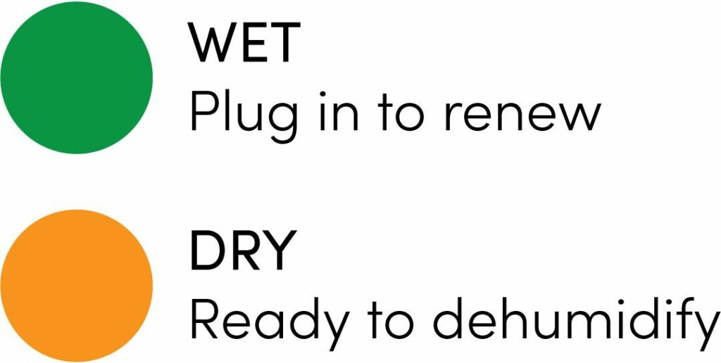✔ 100% CORDLESS DEHUMIDIFIER: No cables or batteries are required. Just plug in your dehumidifier into a power strip and watch the indicating beads dry up for re-use.